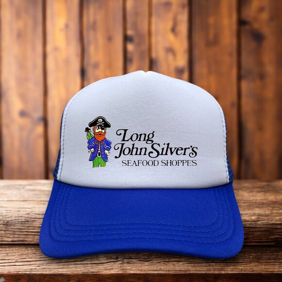 Long John Silver's Seafood Shoppes Mens Trucker Hat Blue Snapback Fast Food Cap