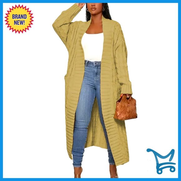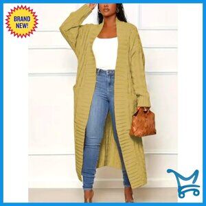Brand new, never worn, and in flawless condition — this long knit cardigan sweater offers an elegant duster style perfect for layering in transitional weather or adding a versatile finish to both casual and dressy occasions. The relaxed fit and ribbed pattern create a sophisticated, comfortable look.