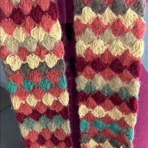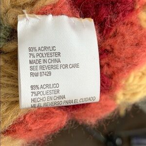 New without tags. A longer scarf. The colors are red, yellow, orange, brown and green.