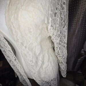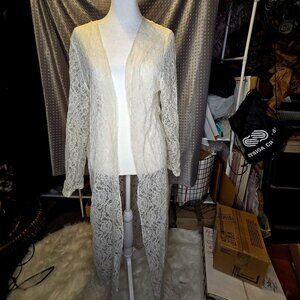 Maxi length lace cardigan Worn once Slight discoloration on neck from selftan. Not noticable on.