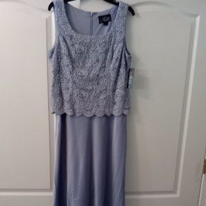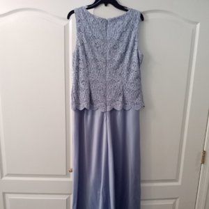 Alex Evening gown lace scallop bodice with A line satin skirt 3/4 Long sleeve lace scallop edge jacket. Never worn New Gown Tags on. Ordered wrong size
