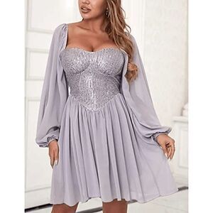 Long Lantern Sleeve Sequin Cocktail Party Bridesmaid Swing Dress SIZE M NEW