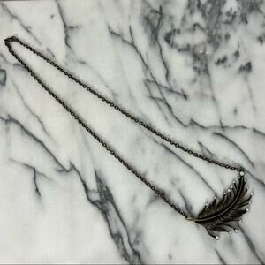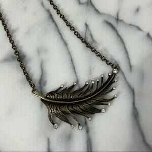 Bronze-y, gold necklace with statement leaf encrusted with a few rhinestones. NWOT. Purchased at Nordstrom. Necklace length: 17”.