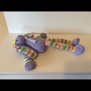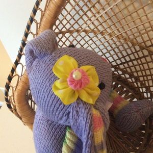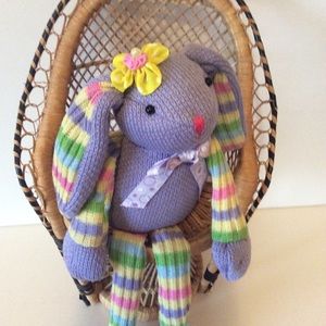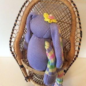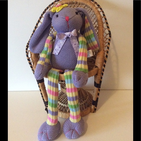 Beautiful Sweater- soft knit Spring colored bunny... has cute flower in hair... ribbon and lovely pastel colors....weighted bottom that makes it easy to sit on shelf....decorative use only....not for children under 3 choking hazard with small parts.