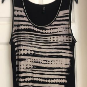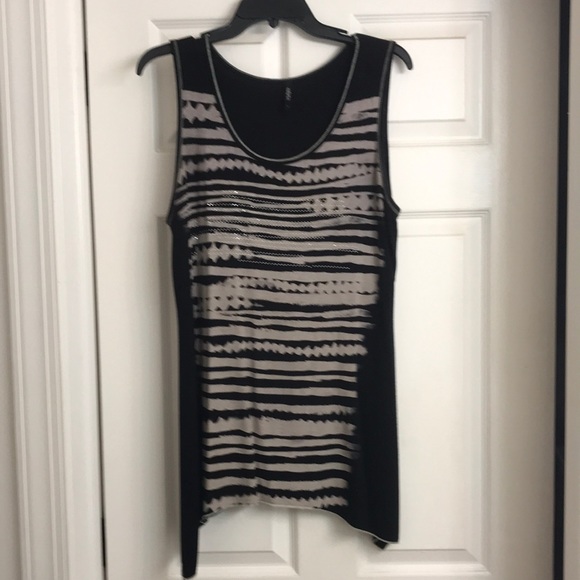 Handkerchief bottom long tank. Light and airy stretch cotton. Silver stud detailing.