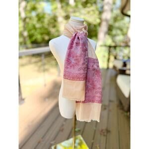 Long Lightweight Cashmere Scarf Pink Floral Pattern Soft Elegant Wrap Shawl