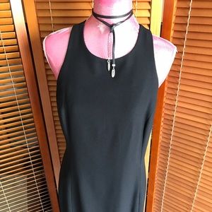 Necessary luxury for your evening wardrobe. Classic chic from Ann Taylor with cross cross back and back split. Fully lined. Back zipper. Dress is 50% polyester 50% acetate. Lining 100% acetate. About 48 inches long. 32 inch waist. 42 inch hip about 17 inches armpit to armpit . Never worn. Excellent condition .