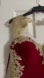 Beautiful long maroon red dress with gold detailing on the sides is in good condition, the only thing is the clip on the top on the back of the dress did fall off and can be replaced easily