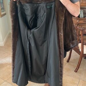 Beautiful Peter Duffy dark brown, long Mink Coat with stand up color. Excellent condition!