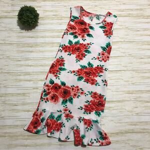 Long Modest Spring Summer Sleeveless Floral Ruffle Peplum Fitted Dress Small