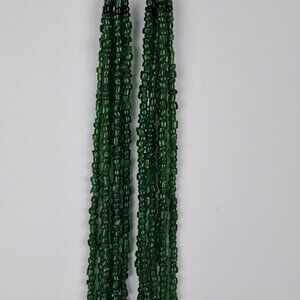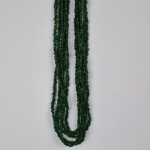 Long Multi Strand Green Glass Seed Bead Necklace w/ Silver Tone Beads