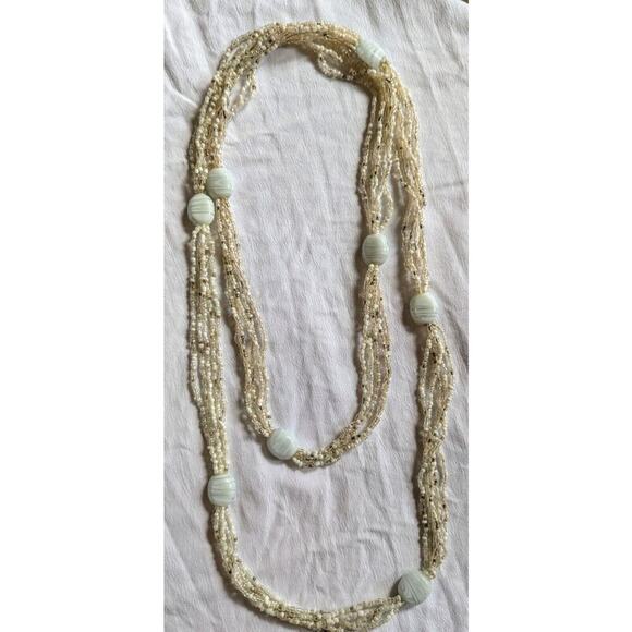 Long Necklace Beaded Mixed Beads Faux Pearls 5 Strand Glass 24" Drop