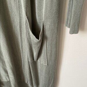 Stylish long open front cardigan with pockets. Perfect for layering.