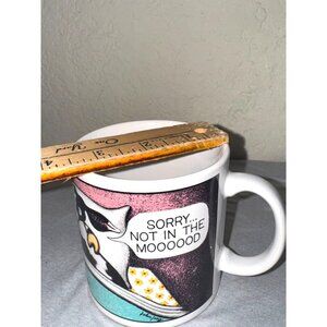 This ceramic mug features humorous cow illustrations and witty text, crafted by Long Overdue Licensing Corporation. A playful, functional addition to your drinkware.