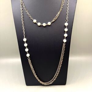 Long Pearl and Gold tone Necklace 52" Versatile, layers or single beautiful !!!