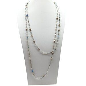 Long Premier Designs Crystal & Metal Bead Necklace, Vintage Blue and Gold Tone