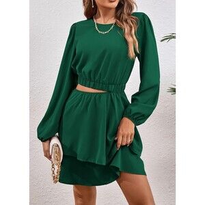 * Description: Ruffled Hem, Puff Sleeve And Waist Hollow Out Design. Please look at the actual pictures as the green is more muted than the model.