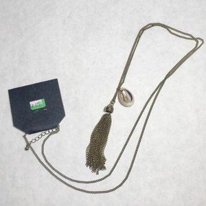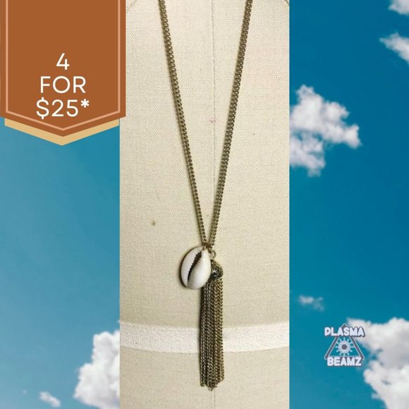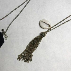 Long Puka Shell and Chain Tassel Lariat Necklace