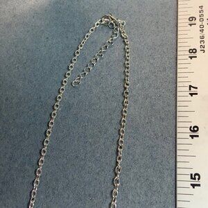 Approximately 30 inches long, with 2 inch extender and lobster claw closure. Heart pendant drop length approx. 4 inches.