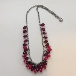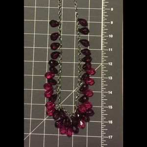 Long Raspberry-Colored Crystal & Silver necklace