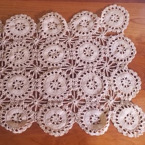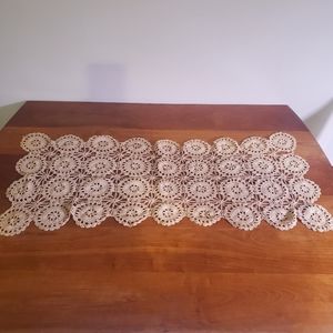 Pretty vintage beige crocheted mini runner cdoily measures 12" w x 33" l
