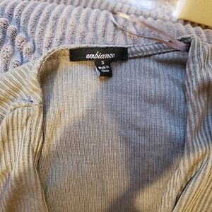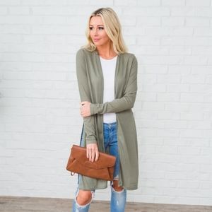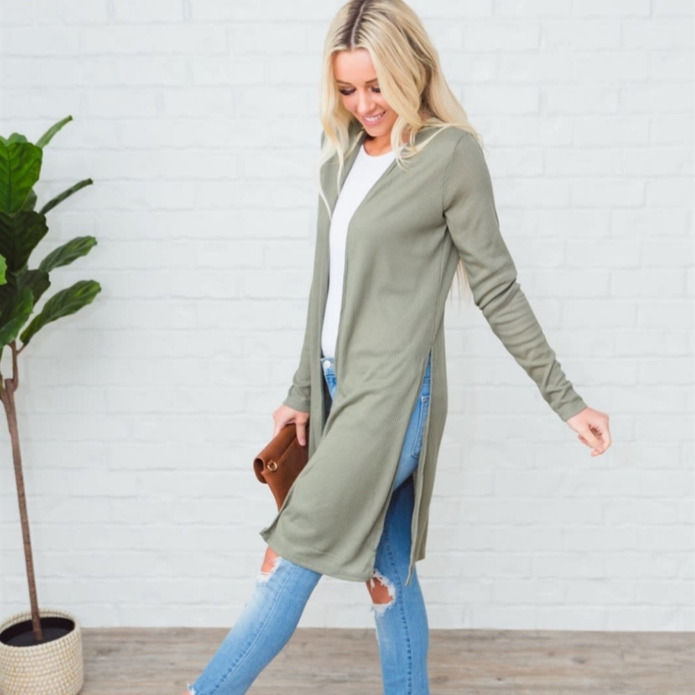Throw on ribbed cardigan with side slits and open neck line and long sleeves. Brand new but no tags