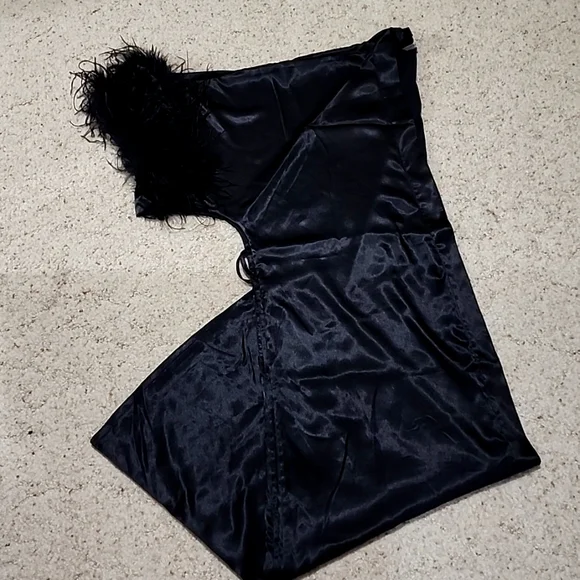 Satin Robe with Fur Sleeves, OS, Black