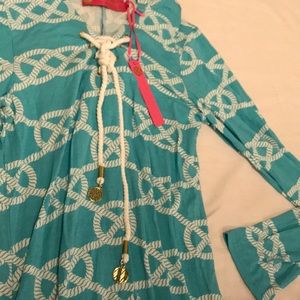 Long sleeve long dress with hoodie and slits on both sides at the bottom. Material: 95% Rayon 5% Spandex. Stretches to fit most shapes and sizes. In good condition. Never worn. Includes rope lacing to close the top of the dress. About 5ft in length.