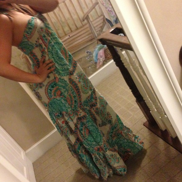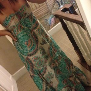 Long beautiful summer dress by Roxy. Worn once. Can be tied around neck or made into a bow becoming strapless.