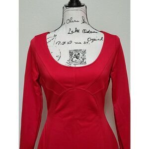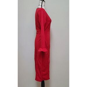 ❤️ Long Ruffle Sleeve Front Slit Bodycon Boat Neck Party Midi Red Dress M NEW