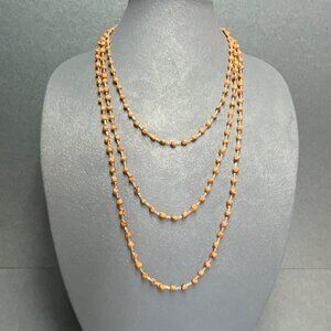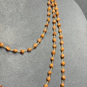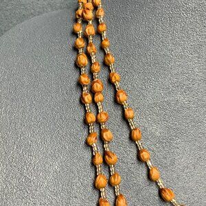 Long Seed Bead Necklace 80 In Brown Clear Handmade Retro Vintage Boho Organic