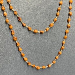 Behold this ridiculously retro masterpiece: a dazzlingly long necklace with actual seeds, hand-strung with clear seed beads. Perfect for anyone who loves mixing nature with shiny things.