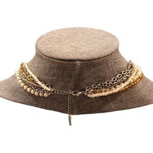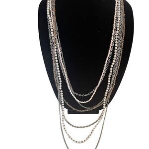 Long Seven Strand Silver-tone, Faux Pearl, and Bead Chain Necklace