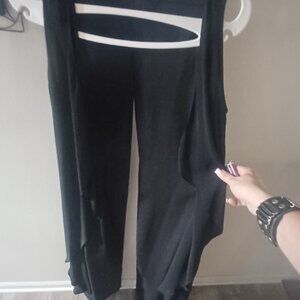 Long Sheer Black Duster Vest Camino Large Slit Slanted Angled Sides Cape Med