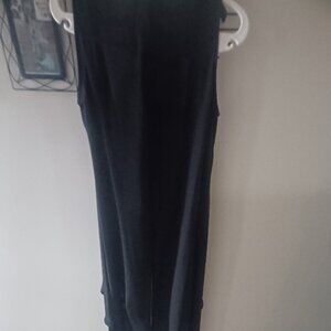 Long Sheer Black Duster Vest Camino Sleeveless Large Slit Slanted Angled Sides Cape Med