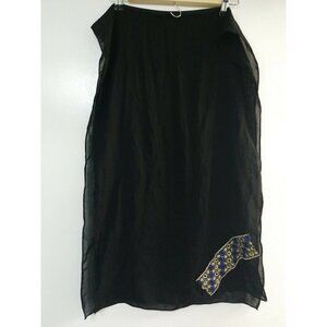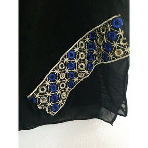 Long Sheer Black Poly Floral Lace Scarf. w. 5" Fringe! 17" x 56" NEW. Condition is Pre-owned. Shipped with USPS First Class.