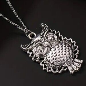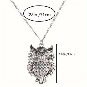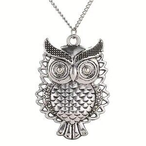 Long Silver Owl Necklace 28" Chain Pendant Y2K Retro Style Bird Big Eyes