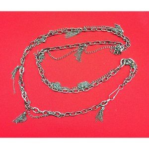 Long Silver Pewter Tone Long Chain Necklace with Accent Tassels