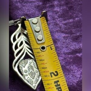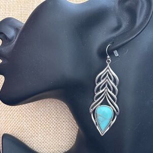 Long Silver Tone Earrings Faux Turquoise Teardrop Stone Cutout Design 1982 G