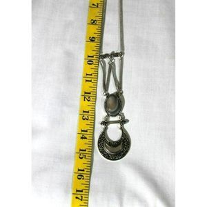 Long Silver Tone Faux Abalone Glass Stone Pendant Multi Tier Statement Necklace