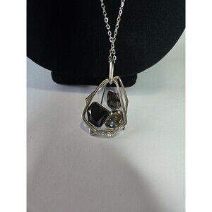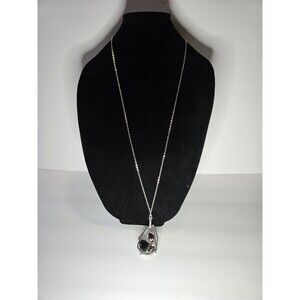 Long Silver Tone Necklace with Large Rhinestone Pendant Adjustable Length