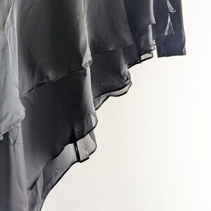 Hem is layered satin and sheer