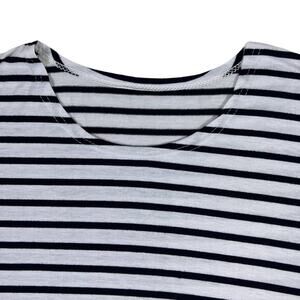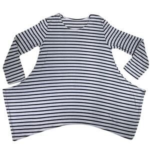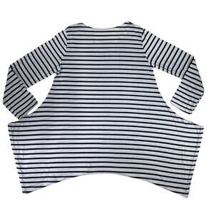 Women's long sleeve t-shirt tunic top with a split SharkBite hem in back & white stripes. Soft jersey tee material. There are no tags. Please see measurements. Due to light & screen variations, colors may vary slightly from the images