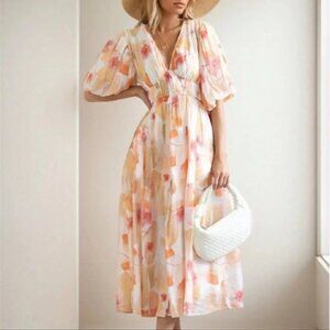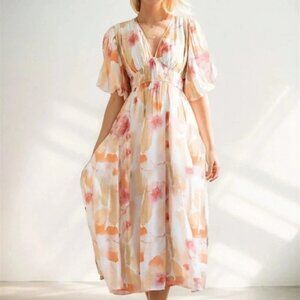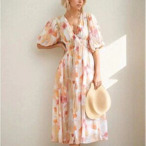 Long Sleeve Boho Floral Maxi Dress V Neck Casual Long Dress