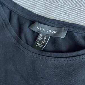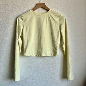 This listing is for two long sleeve tops. The bright colored one is crop length.