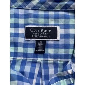 Long Sleeve Button Up Men’s 16/32/33 Gingham Light Blue Green Club Room