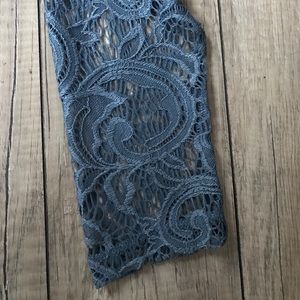 Long sleeve shirt with lace sleeves. Never worn but I did take the tags off. Bought as a back up shirt while away.