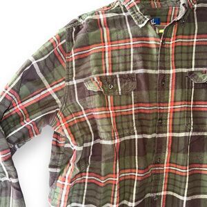 Long Sleeve Checkered Plaid Button Down Flannel Mens Large Green Red Lumberjack