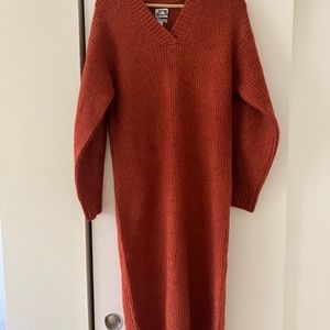 Long Sleeve Chunky Sweater Midi Dress, rust, fits m/l