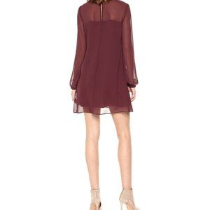 Long Sleeve Cut-out Mini Shirt Dress Burgundy Sz M